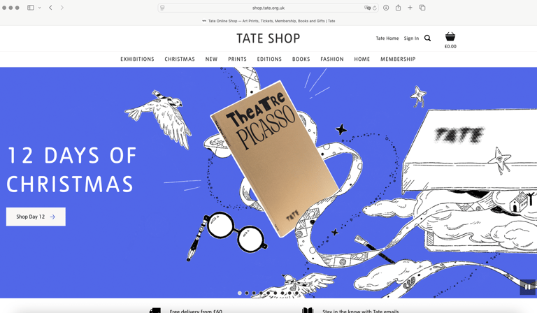 Created for Tate’s 12 Days of Christmas campaign, the illustrations were designed to promote hero products from Tate’s shop across the 12 days leading up to Christmas, bringing a festive narrative to life through motion on Instagram and adaptable layouts for web and email.